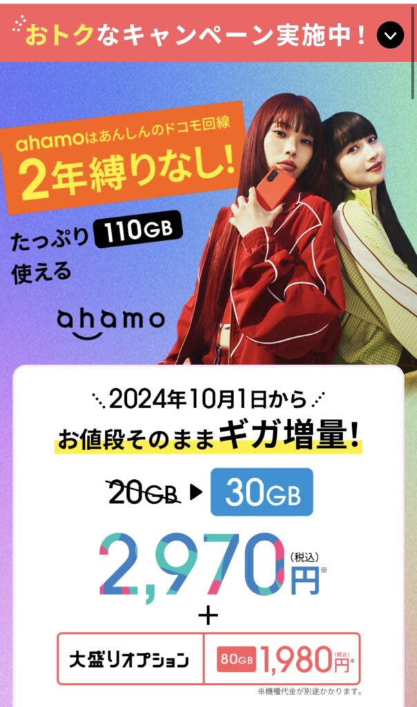 ②、ahamo大盛り
